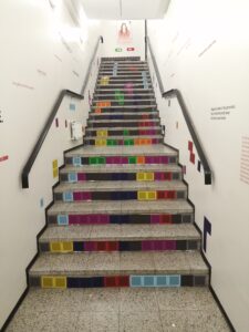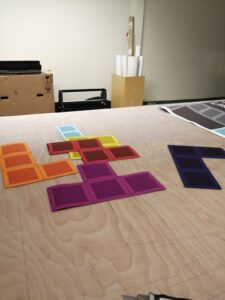 Mittasin portaat ja mietin teemaa portaisiin. Päädyin Tetris teemaan